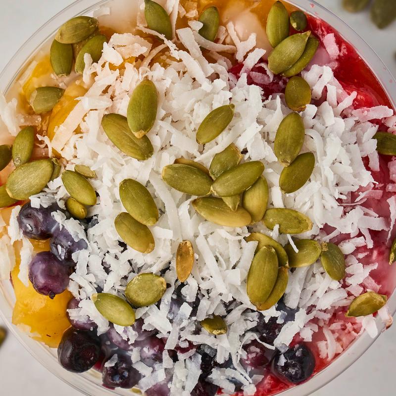 Extra Toppings +$0.99: Cranberries, Chia Seeds, Chop Almonds, Granola, Sunflower Seeds, Strawberries, Pumpkin Seeds, Blueberries, Hulled Hemp Seeds, Chopped Walnuts, Flax Seeds, Coconut, Cranberries, Chick Peas